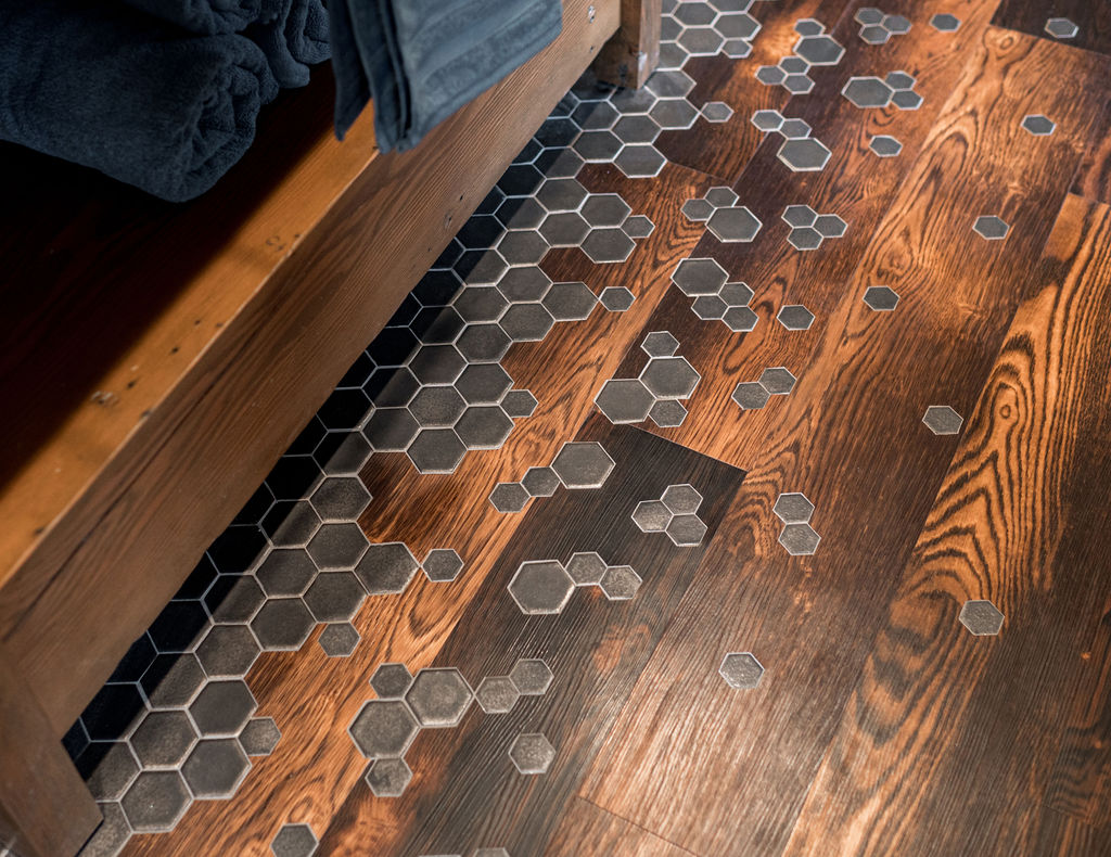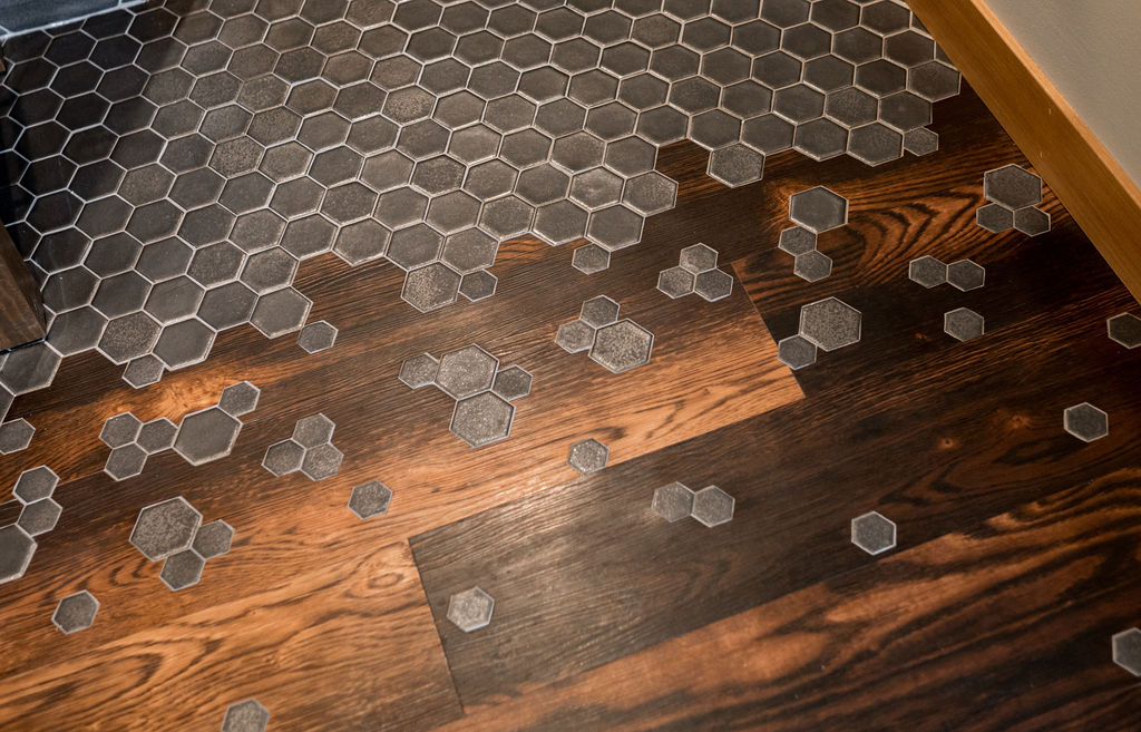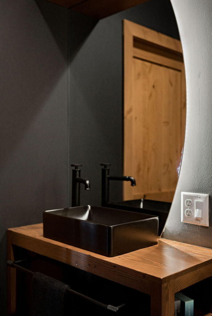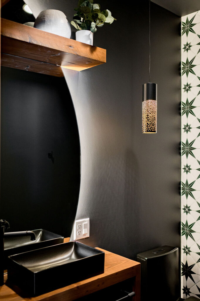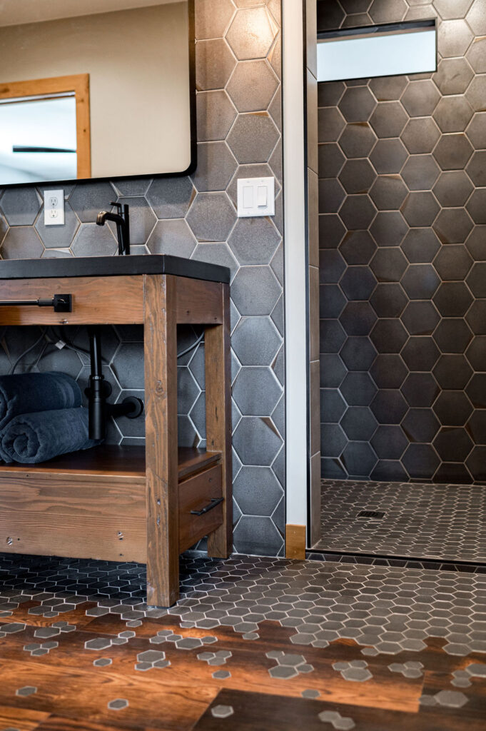 The bathrooms in this home blend bold geometrics and modern craftsmanship to create striking memorable spaces. The result is stylish, thoughtfully designed bathrooms that feel both modern and inviting with an elevated look.